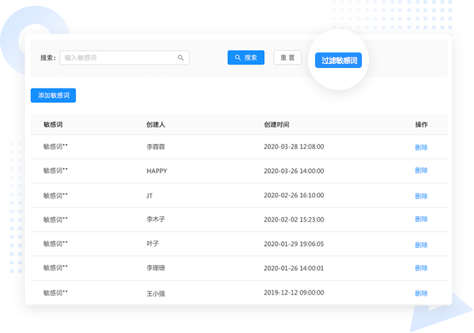 自定义设置敏感词,一旦发生敏感操作,系统自动及时触发预警, 某些信息直接阻断发送,有效控制风险行为,进而规范员工工作行为。