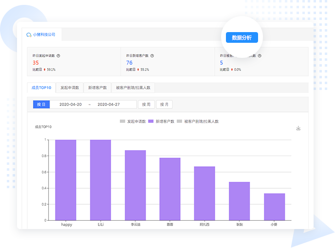 提供衡量企业成员添加客户、与客户聊天及客户流失情况的相关数据,帮助企业实现分析、考核成员联系客户情况的需求。